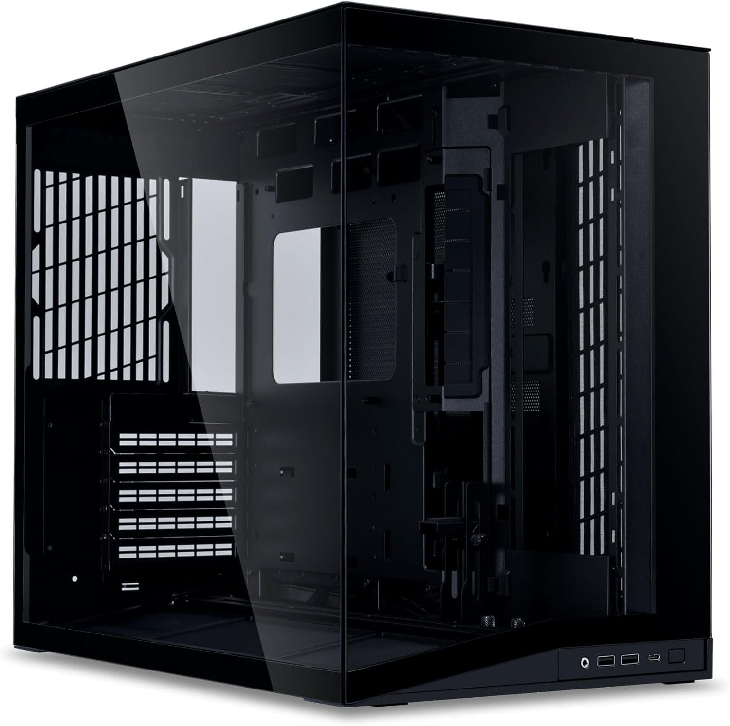 Projetado para máxima flexibilidade, o gabinete possui estrutura robusta em aço, alumínio e vidro temperado, além de amplo espaço interno com suporte para placas-mãe ATX, Micro-ATX e Mini-ITX. Mesmo sendo compacto, ele permite a instalação de placas de vídeo de grande porte e diversas opções de refrigeração líquida.